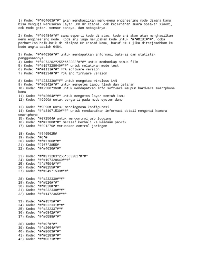 Oke berikut kode rahasia xiaomi tersebut : Daftar kode rahasia xiaomi semua tipe. Setelah cek body luar, selanjutnya kita lanjut cek memakai mode engineering. Gunakan kode rahasia untuk cek xiaomi redmi note 5a 6a 5 6 plus, xiaomi redmi note 3x 4x, xiaomi mi 5 6 8 explorer dll.